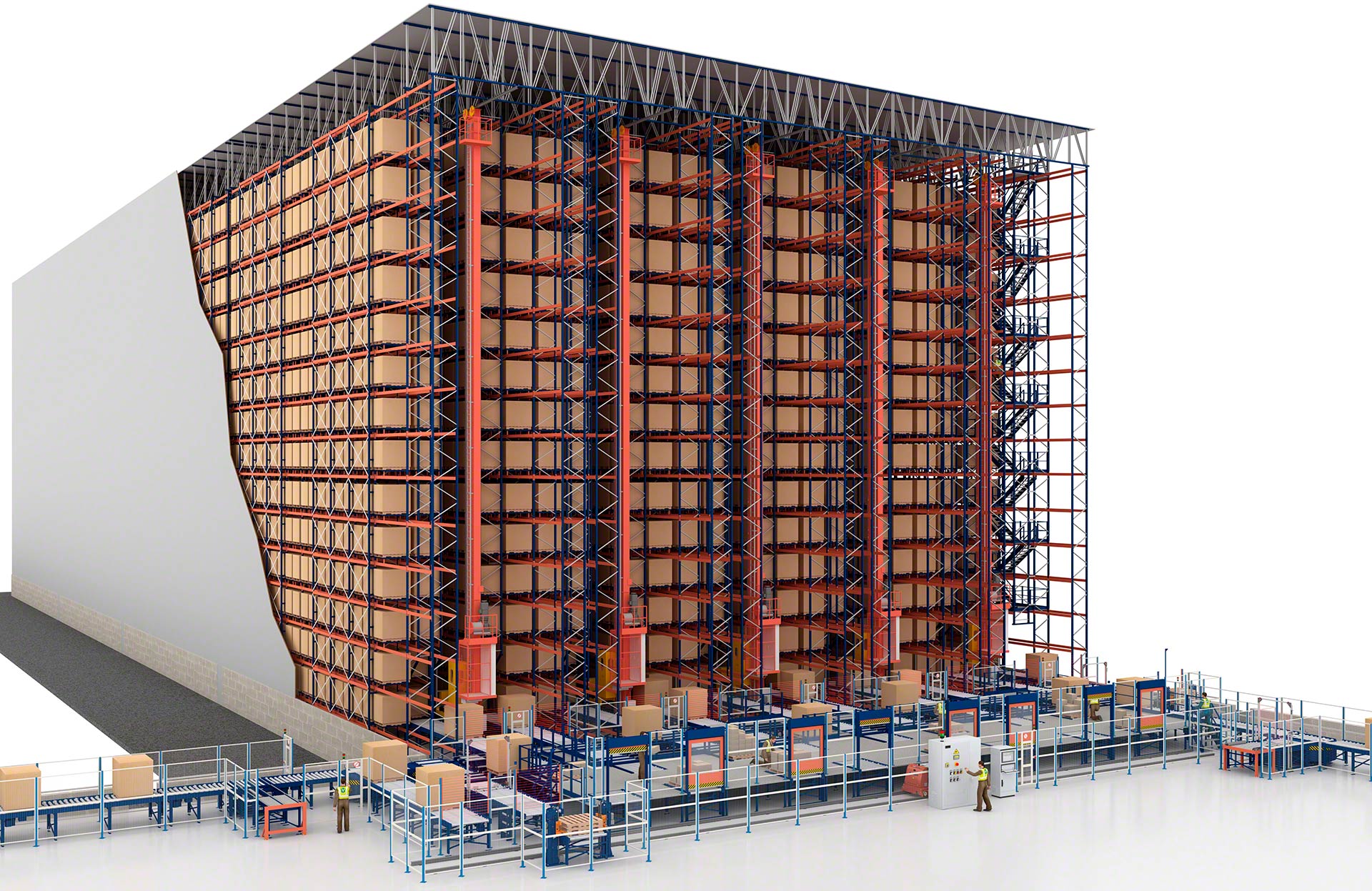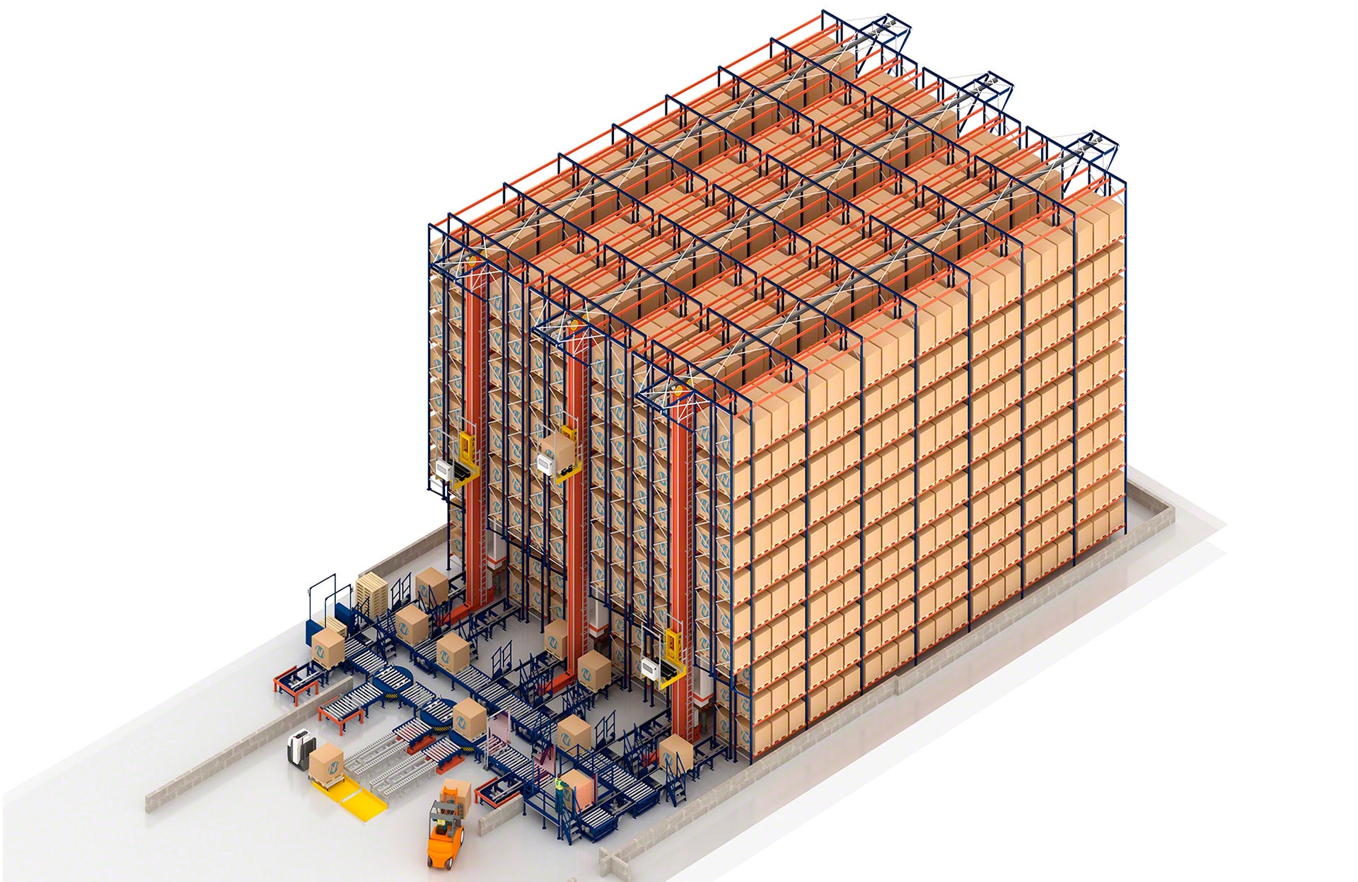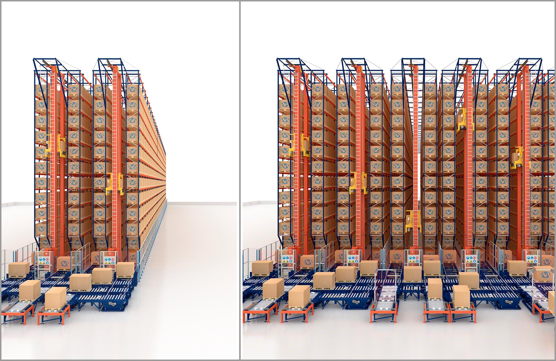 - Kompleksowe rozwiązanie: Mecalux projektuje, wytwarza, montuje i uruchamia każdy z elementów magazynu automatycznego: od regałów magazynowych, przez układnice i przenośniki, aż po system kontroli i oprogramowanie do zarządzania obiektem logistycznym.