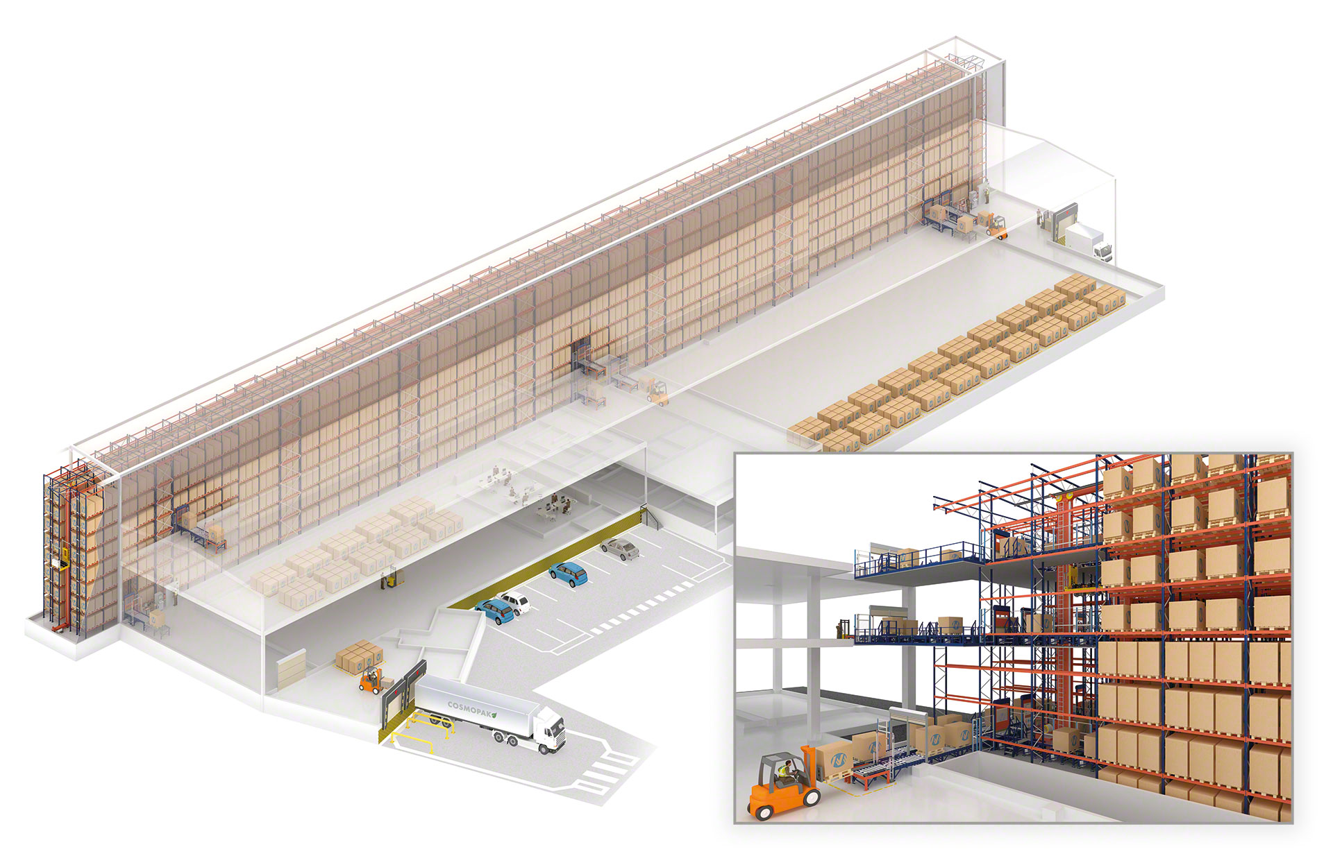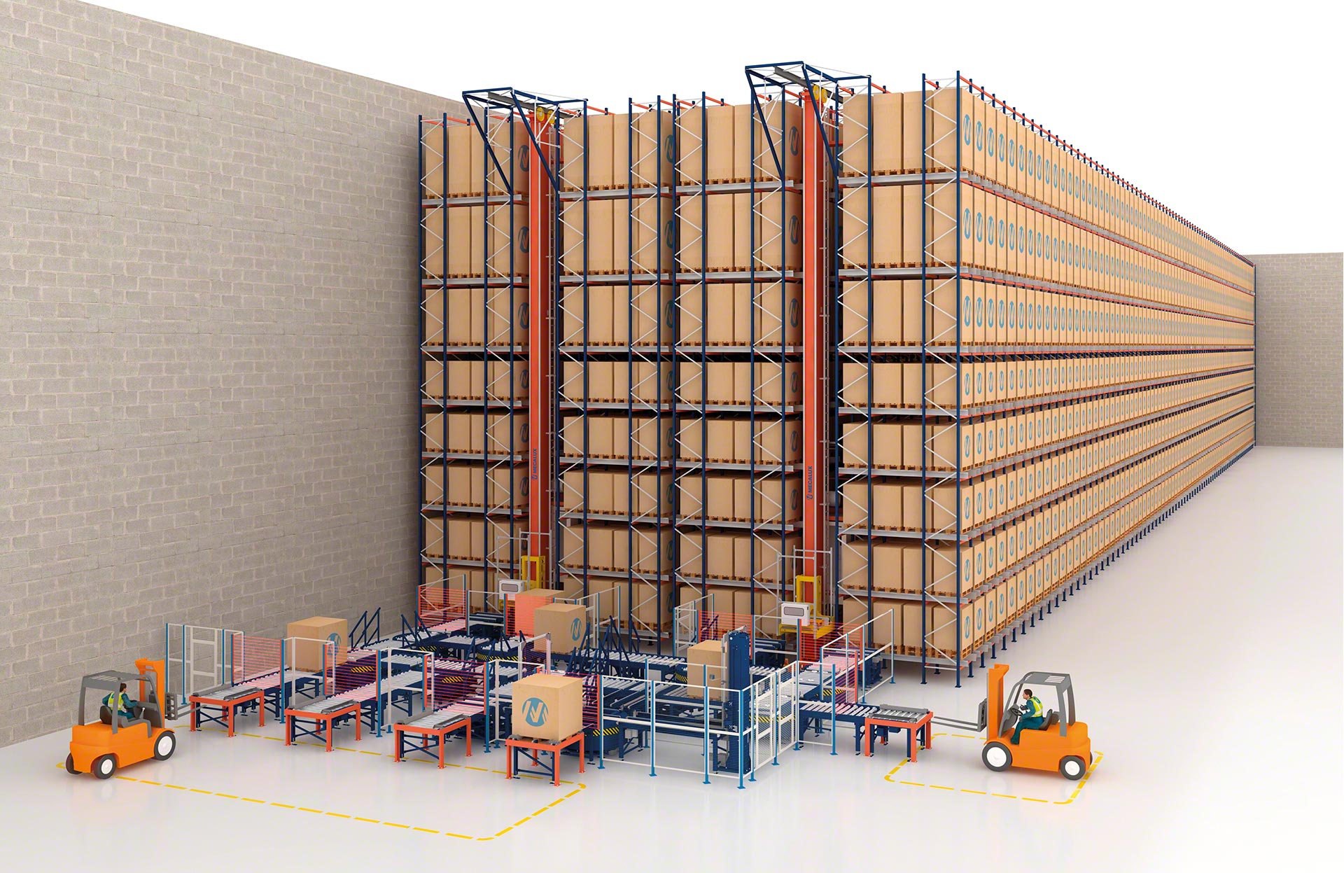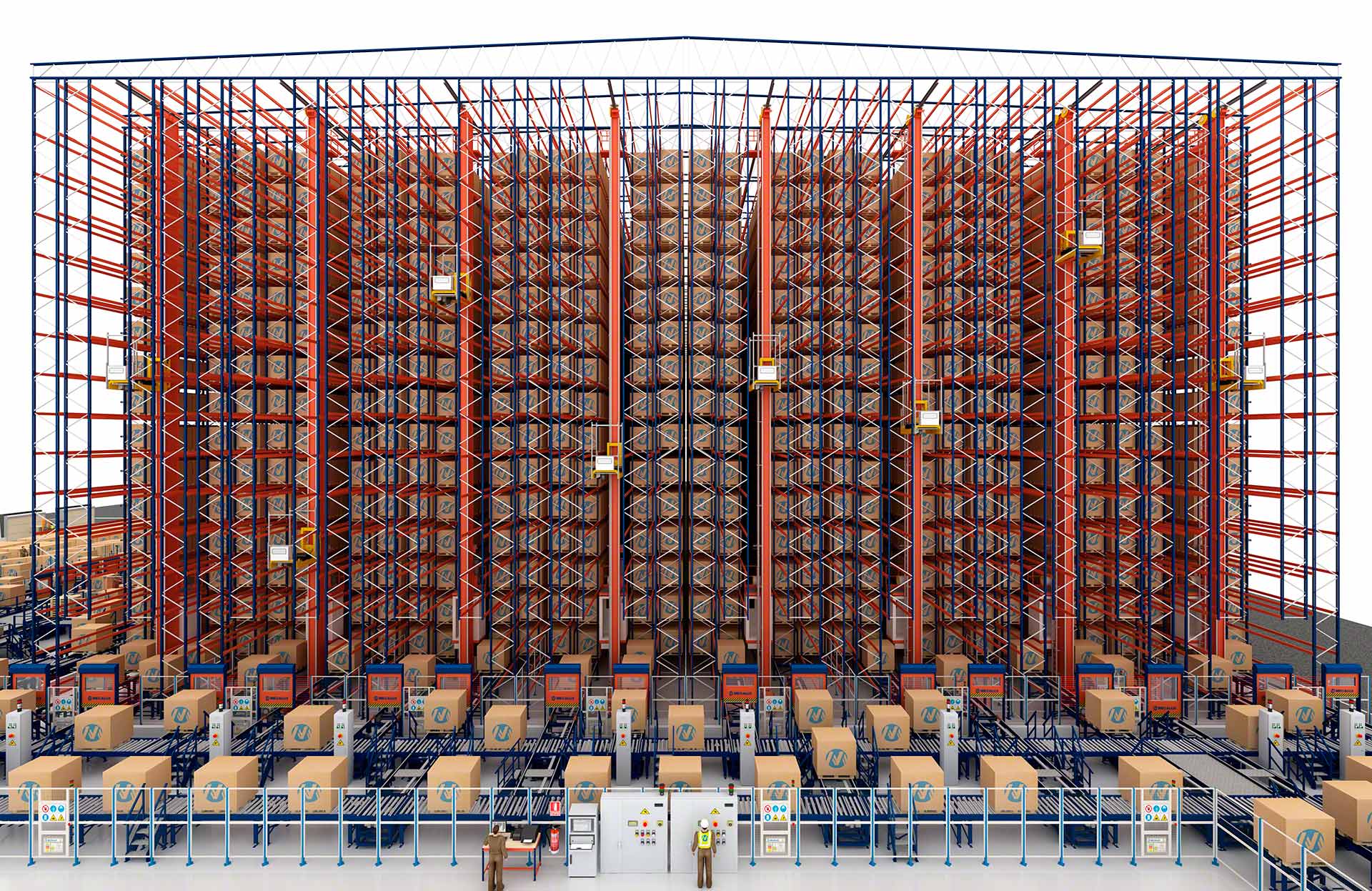 - Kompleksowe rozwiązanie: Mecalux projektuje, wytwarza, montuje i uruchamia każdy z elementów magazynu automatycznego: od regałów magazynowych, przez układnice i przenośniki, aż po system kontroli i oprogramowanie do zarządzania obiektem logistycznym.