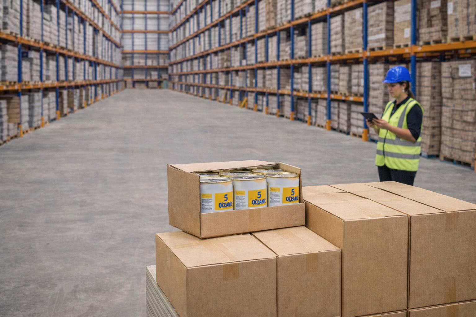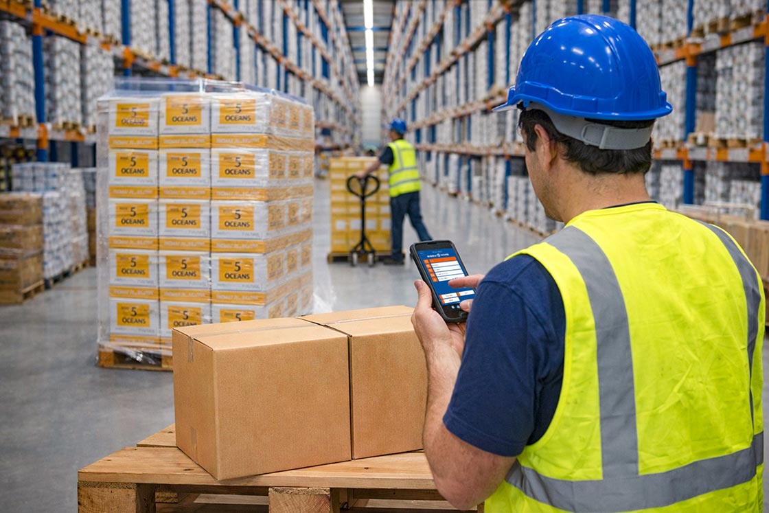 Oprogramowanie do zarządzania logistyką uczestniczy we wszystkich operacjach magazynu Conserveries des Cinq Océans o powierzchni 10 000 m² – od przyjęcia towaru, który trafia w kontenerach morskich do portu, aż po jego wysyłkę. Pracownicy grupują puszki konserw na paletach, zgodnie z instrukcjami systemu Easy WMS, co ułatwia ich manipulację i składowanie.