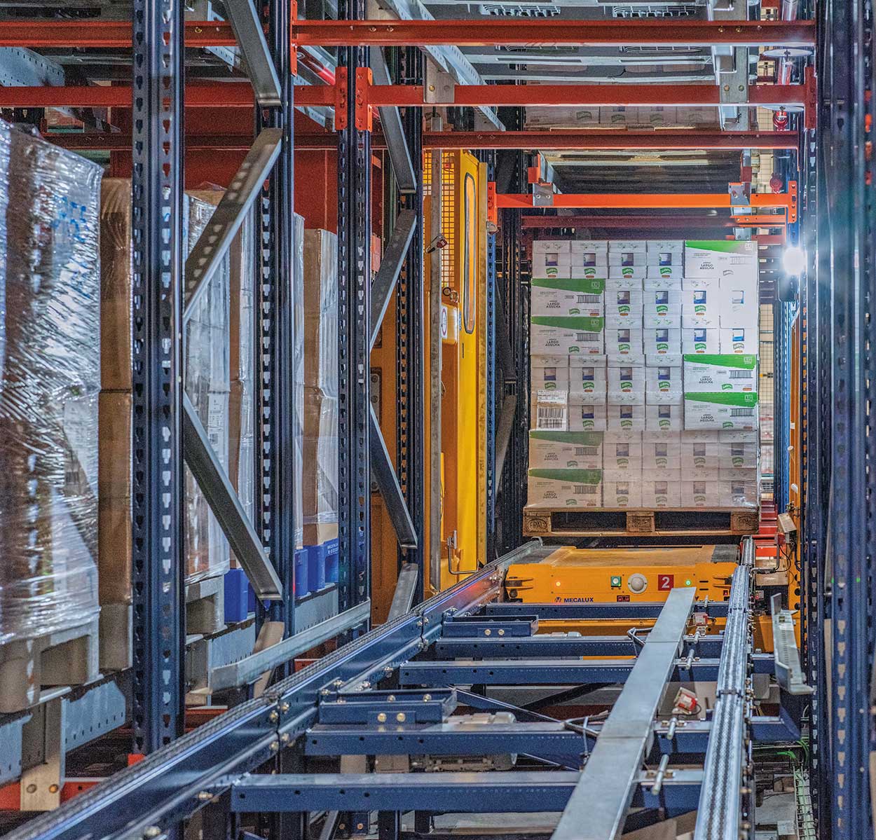 Nadawane jednostki asortymentowe są klasyfikowane przez wózek wahadłowy i odkładane w kanałach przepływowych zgodnie z wytycznymi systemu WMS Mecaluxu i ERP firmy. Ponadto obiekty Herba Ricemills wyposażone są w regały przepływowe przeznaczone do przechowywania towarów, które muszą pozostać w kwarantannie celem ich weryfikacji i kontroli jakości. Rozwiązanie to minimalizuje odległości tras, skraca czas manewrowania wózkami widłowymi oraz przyspiesza wyjmowanie palet.