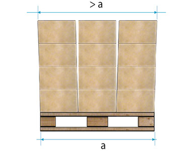 Nawet po owinięciu towaru folią dość często dochodzi do jego przechylenia podczas transportu i przeładunku palet. W rezultacie zwiększają się wymiary jednostki ładunkowej, zazwyczaj w górnej części. Poniżej przedstawiono kilka możliwych przypadków: