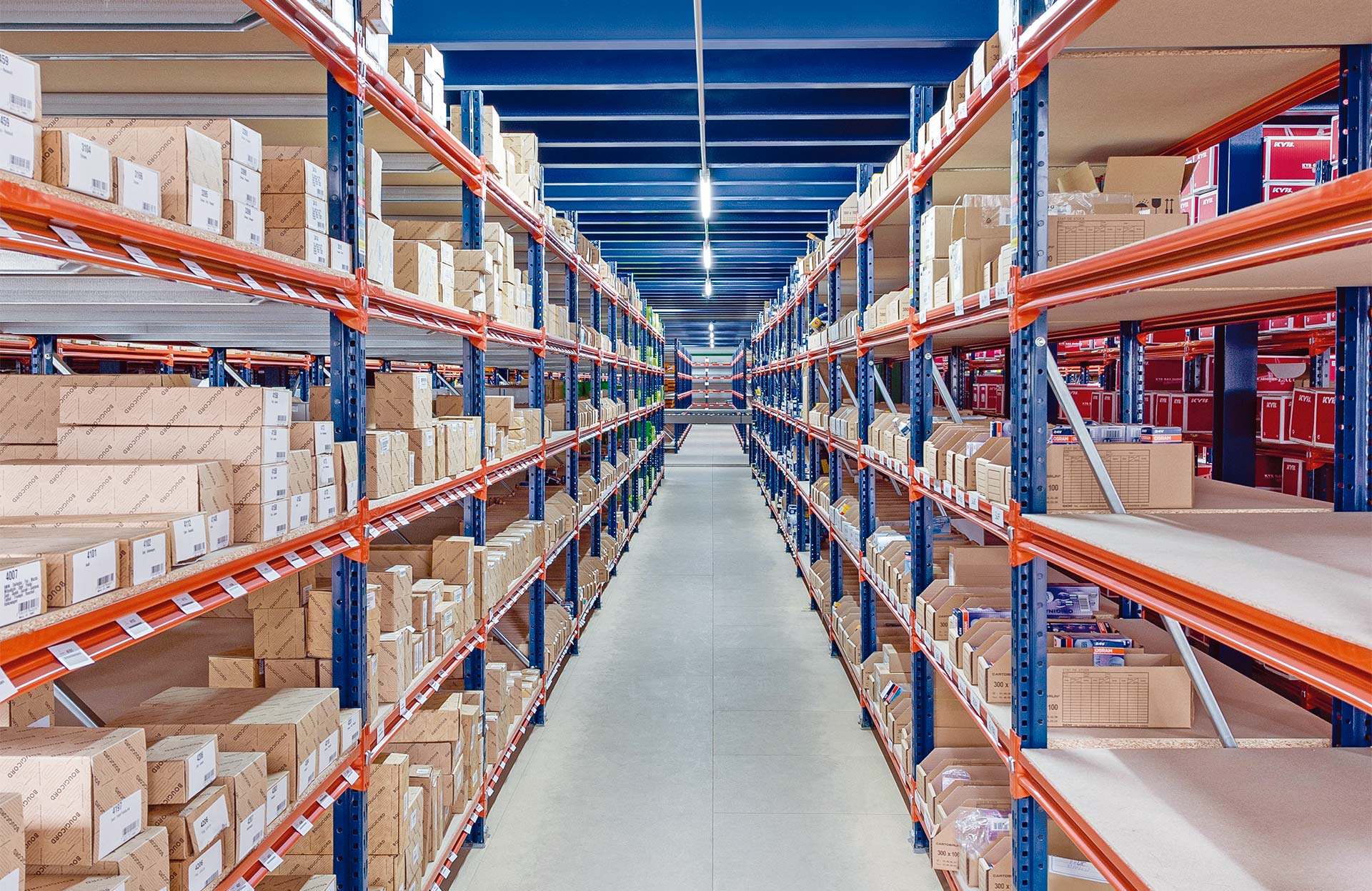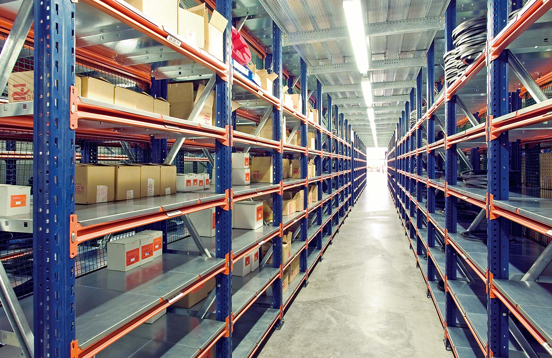 Mecalux M7Regały półkowe do ciężkich ładunków zazwyczaj są stosowane w magazynach kompletacyjnych. Ich nośność wynosi ponad 1000 kg na poziom składowania.